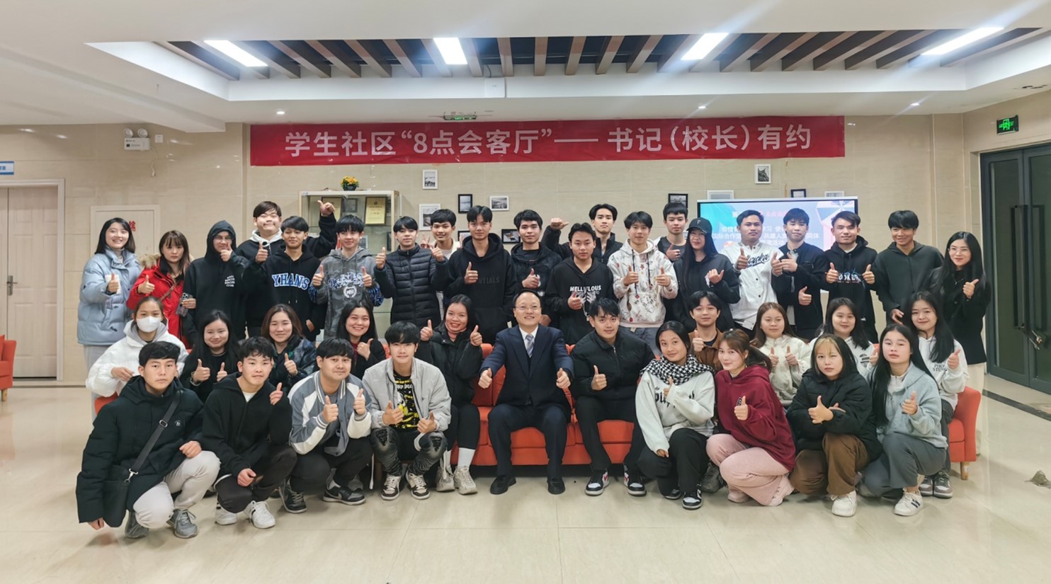 1月10日晚,学生社区迎来了一场别开生面的“8点会客厅”---书记(校长)有约活动,学校党委副书记李王英与80余名留学生欢聚一堂,以“珍惜青春·努力学习·使命担当 做中外合作交流使者,...