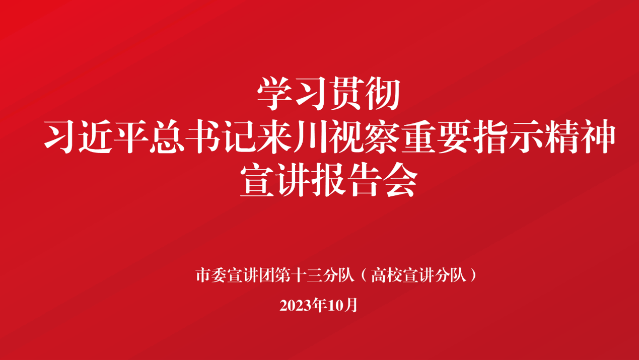按照市委关于做好习近平总书记来川视察重要指示精神“进基层”专题宣讲工作安排,10月13日,市委宣讲团第13分队(高校宣讲分队)团长、市委教育工委书记、市教育局党组书记、局长熊宗辉来到我校,以“加快教育强市建设,奋力谱写中国式...